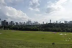 Riverdale Park looking south-west towards the Toronto Skyline, July 2024