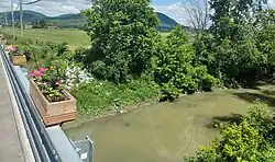 Bridge Road Patriots (Route 133) crosses the small river close to its mouth. It is 23 kilometres (14 mi) by road from this bridge to the village of Sainte-Madeleine.[5]