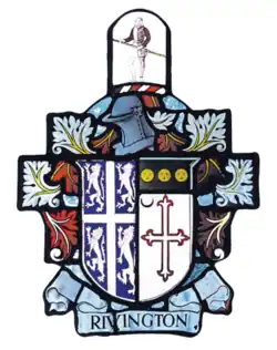 The original school badge was a design of the coat of arms of the Pilkington family of Lancashire, an escutcheon with an argent cross patonce voided gules and were introduced for the school in 1907 by Rev. W. Ritson, Vicar of Rivington. The mower remains on the school coat of arms, but not on uniforms.[33]