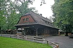 Rožnov pod Radhoštěm is known for the Wallachian Open Air Museum. It is the largest museum of its kind in the country. The life of the ancestors and folk architecture are presented in three separate areas called Little Wooden Town, Wallachian Village and Water Mill Valley.[10] It is one of the most visited tourist destinations in the Czech Republic.[11]