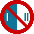 Warning signs mostly have a triangular shape. Their borders are red and their background is yellow, with pictograms being black. Prohibitory and mandatory signs are mostly round in shape. Prohibitory signs have red borders and a white background, with pictograms being black. For mandatory signs, their background is blue and pictograms are white.