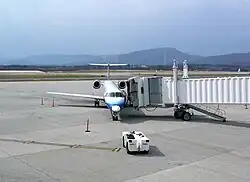 A proposal for runway expansion and facilities upgrades was developed in 1975 but was put on hold while a new regional airport was being studied.[7] During this time, airline deregulation was put in place, and this, combined with the airport's aging facilities and airlines' phasing out of turbo prop aircraft, resulted in less service to the airport.[7] a runway expansion began in the early 1980s to allow larger jets.[11] With the runway extension underway, the airport changed its name from Roanoke Municipal Airport to Roanoke Regional Airport in 1983.[12] The runway expansion was completed in 1985.[11]