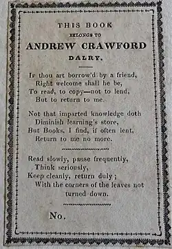 Bookplate by Andrew Crawford, Land Surveyor, Dalry, 1829.
