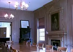 Known to be Robert Allerton's favorite room of the house, the Butternut Room was originally designated as the Dining Room. The room features butternut wall paneling. Above the fireplace hangs a portrait of Robert Allerton when he was around 24 years old, painted by his friend, Ellen Emmet Rand.[46]