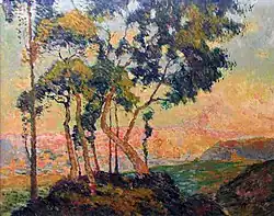 Robert Antoine Pinchon (French pronunciation: [ʁɔbɛʁ ɑ̃twan pɛ̃ʃɔ̃], 1 July 1886 in Rouen – 9 January 1943 in Bois-Guillaume) was a French Post-Impressionist landscape painter of the Rouen School (l'École de Rouen) who was born and spent most of his life in France. He was consistent throughout his career in his dedication to painting landscapes en plein air (i.e., outdoors). From the age of nineteen (1905 to 1907) he worked in a Fauve style but never deviated into Cubism, and, unlike others, never found that Post-Impressionism did not fulfill his artistic needs. Claude Monet referred to him as "a surprising touch in the service of a surprising eye".