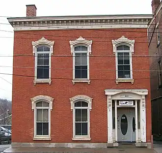 Robert C. Woods House, also known as the Jacob S. Rhodes House, is a historic home located at Wheeling in Ohio County, West Virginia, United States. It was built between 1839 and 1845, and is a 2+12-story, 13-room brick dwelling, with an Italianate-style facade. It measures 32 feet by 90 feet, with a front block 45 feet deep and rear wing of 45 feet. The front facade features curved cast-iron lintels.[2]