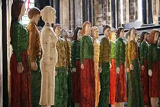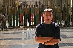 His monumental woodcarving project 'Odyssey' sought out temporary exhibition spaces in cathedrals, street corners, town squares, barns and fields in Poland, Ukraine and the UK in venues such as Rochester Cathedral, Portsmouth Cathedral, Salisbury Cathedral,[6][7] Chichester Cathedral, Worcester Cathedral and York Minster. Odyssey consisted of an expanding group of carved wood male and female figures, each 2.5m tall. These polychromed figures were exhibited in Leutkirch im Allgäu, Baden-Württemberg, Germany in 2013. As of 2019, there were 46 figures in the Odyssey touring group. A further 5 Odyssey figures were created for each of the five exhibition venues in Germany between 2013-17.