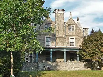 This historic structure was built in 1896 and is a 2+1⁄2-story, rectangular, stone dwelling that was designed in the Jacobean revival style. It features two-story projecting bays with leaded glass windows, soaring cross gables and dormers, and pointed arch openings. Also located on the property is a contributing stable/carriage house and a free-standing, stone fireplace. It housed the Philadelphia School of Criminology from the late-1940s to 1963, then housed Combs School of Music until 1983.[2]