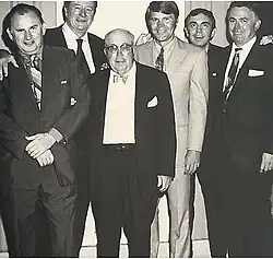 From left to right: Robert R. O'Donnell, John Wayne, B.R. McLendon, Glen Campbell, Gordon McLendon and Bob Hartgrove