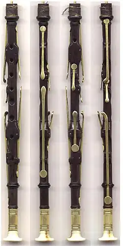 - from the back, the thumbhole (for high g) and two keys operated by the right thumb (for low F sharp and for d sharp),