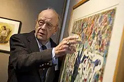 Neuman's career as an artist spanned over sixty years, with a resulting body of work that "defies traditional expectations of what an artist's canon should look like".[13] As an artist, he took "a staunchly individualistic approach to his work by never giving in to fads, the demands of the commercial sector or bowing before the critics".[14] Instead, his body of work is characterized by extended series of paintings that explore a particular motif or symbol and are heavily influenced by events in the artist's own life, in addition to global culture and history.[15]