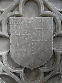 - ^ Mis-drawn and mis-blazoned by Rogers as a cross engrailed. The Bere Ferrers bench ends, where perhaps the wood disallows great detail in carving, shows not a cross crosslet but rather a thick plain cross.
