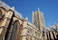 Lincoln Cathedral, showing the central tower. When Stretton was a canon, it was topped by a very tall spire.