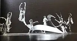 In the 1993 German television production Sculpture and Dance: Heavy Metal and Light Steps, the Elicoidali and the Perpendicolari were brought together on the stage with a professional ballet company.[8] The dancers moved and intertwined themselves with these sculptures. The art historian Eduard Trier characterized Cordone's work as “sculptural beings.”[4] The Elicoidali and the Perpendicolari acted as equal ballet figures on stage and merged with the artistic movement of ballet dancers to form a total work of art. In the course of the development of the sculptural ballets, Cordone also created photographic canvases of the interaction of the dancers and the sculptures.[9]