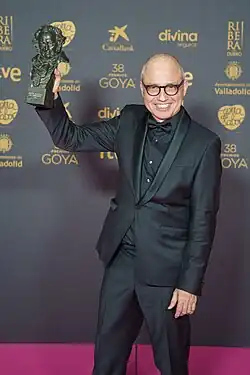 Director Pablo Berger holding the Goya Award for Best Animated Film won by the film at the 38th Goya Awards