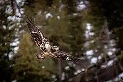 A Bald Eagle (juvenile) soars over the Rock Creek Microburst Viewing Site