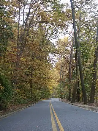 Sections of park roads have been subject to weekly closures to motor vehicles since the 1960s, though the times and locations changed. After the 1963 closure experiment, another was attempted in 1967 on Beach between Joyce and Broad Branch on Sunday mornings, but the response was not positive and it was discontinued. In 1970, NPS tried again, closing 2 mi (3.2 km) of Beach, and part of Morrow, every Sunday from 9 a.m. to 6 p.m., but was again discontinued due to a lack of use. But, in 1972, NPS tried for a fourth time, again closing Beach between Broad Branch and Joyce from 8 a.m. to 6 p.m. on Sundays and it became a permanent feature.[48][56] On more than one occasion in the 1970s they experimented with Saturday closures in the summer, once to support a new bicycle concession near Carter Barron, which generated no negative response, but also little use.[48][66] By 1980, they added the section from Tilden to Piney Branch Road and expanded the hours to 7 a.m. to 7 p.m. and in August 1981, they expanded the closure to Saturdays and holidays as an experiment.[66] In July 1982, the weekend automobile ban was extended to the section of Beach from Picnic Grove 10 to Wise, and between West Beach and the D.C. boundary.[67] In August 1983 they made the closures, between 7 a.m. and 7 p.m. every Saturday and Sunday, official policy as part of the scaled back 1983 Plan.[50] In 1985, the hours were increased from 7 a.m. Saturday to 7 p.m. Sunday from early April to Veterans Day on upper Beach Drive and year-round between Joyce and Broad Branch roads.[68][5] By 1998 the closures had expanded to include not just the three sections of Beach but also the entirety of Bingham and Sherril Drives within the park and last all year long.[69]