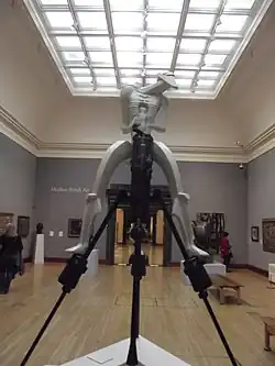 Rock Drill comprises a plaster figure perched on top of an actual rock drill.[2] The combination of an industrial rock drill and the carved plaster figure makes the artwork an example of a "Readymade" created at the same time as Marcel Duchamp's Bicycle Wheel (1913).[3] A 1974 reconstruction, by Ken Cook and Ann Christopher, is part of the Birmingham Museum and Art Gallery's collection. Rock Drill has been heralded as embodying the spirit of "radical Modernism more dramatically than any other sculpture, English or continental, then or since".[4]