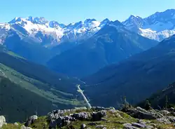 Rogers Pass is a high mountain pass through the Selkirk Mountains of British Columbia, but the term also includes the approaches used by the Canadian Pacific Railway (CP) and the Trans-Canada Highway. In the heart of Glacier National Park, this National Historic Site has been a tourist destination since 1886.[1][2]
