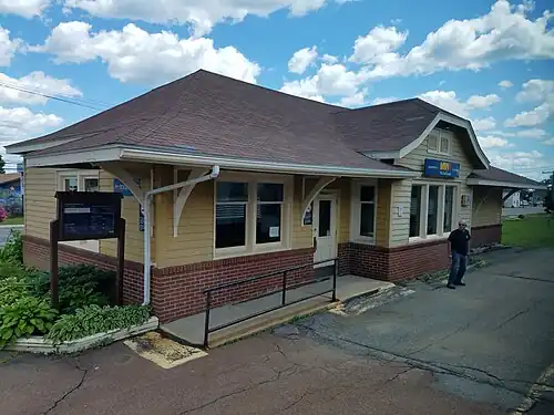 Rogersville station is a railway station in Nouvelle-Arcadie, New Brunswick, Canada. Nouvelle-Arcadie is served by Via Rail's Montreal-Halifax train, the Ocean; it is staffed and wheelchair accessible. The station is a 1+12-storey wooden-framed yellow clapboard building with a hip roof, located at 11082 Rue Principale (Route 126).