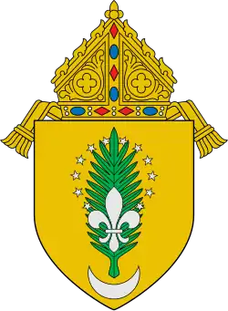 The former coat of arms of the Diocese of Maasin, used from 1968 to 2015.