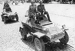 The first front line combat armored cars were acquired in late 1942-early 1943. They comprised 11 Leichter Panzerspähwagens (six Sd. Kfz. 222 and five Sd. Kfz. 223).[4] A much more significant delivery came in August 1943, when the Germans transferred 40 Sd. Kfz. 222 along with 8 Italian-built AB 41s.[5] In 1941, Romania built one armored car prototype armed with one Czechoslovak-made 37 mm gun.[6]
