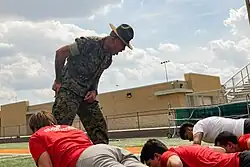 U.S. Marine Corps Sgt. Rasheed Awyan instructs poolees at Romeoville High School during Marine Week Chicago, July 10, 2025, in celebration of the Corps’ 250th anniversary.