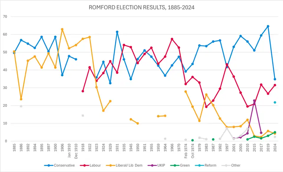 - ^ "New Seat Details – Romford". www.electoralcalculus.co.uk. Retrieved 29 March 2024.