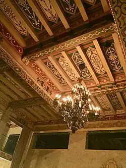 The 12-story hotel has 300 guest rooms including 63 suites.[6] It occupies a site on the Hollywood Walk of Fame and across Hollywood Boulevard from the TCL Chinese Theatre.[6][14] The building has a Spanish Colonial Revival Style interior, with leather sofas, wrought-iron chandeliers and colorful tiled fountains.[15][14]