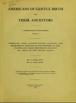 8. ^ Walker, Rosa Kershaw; Pittman, H. D. (Hannah Daviess) (1903). Americans of gentle birth and their ancestors : a genealogical encyclopedia ... embracing many authenticated lineages and biographical sketches of the founders of the colonies and their descendants found in all parts of the United States. Saint Louis, MO : Buxton & Skinner. Retrieved 24 May 2022. Public Domain This article incorporates text from this source, which is in the public domain.