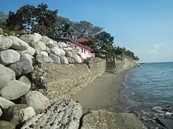 Another version attributes the name to the sight of a range of foothills to the west of the Poblacion, which, from a distance, resemble large rosary beads, thus forming a long, rocky rosary.[6]
