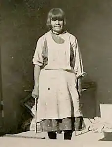When she was very young, her parents died during a swine flu epidemic.[1] She and her sister Pomasen were left orphans and lived with a relative, Mary Cata.[2] In 1920 Gonzales married Robert Gonzales and, along with her sister, moved to his native pueblo of San Ildefonso.[3]