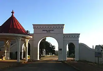 Rose Hill Cemetery is a 50-acre cemetery located on the banks of the Ocmulgee River in Macon, Georgia, United States, that opened in 1840.[3][4] Simri Rose, a horticulturist and designer of the cemetery, was instrumental in the planning of the city of Macon and planned Rose Hill Cemetery in return for being able to choose his own burial plot.[5] The cemetery is named in his honor.[3]