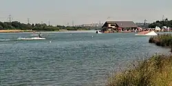 Rother Valley Country Park is home to Sheffield Cable Waterski and Aqua Park. The cable waterski system[3] was installed when the park was originally opened to the public; it was one of the few cable waterski systems in the UK at the time. In recent years an Aqua Park (inflatable obstacle course) was added.[4] The popularity of cable waterskiing has since grown significantly, and there are now a number of these systems in the UK, mainly focused on offering kneeboarding and wakeboarding facilities and what is now called a Wake Park, which is a collection of obstacles (kickers, sliders, etc.) floating in the lake that riders will "hit" on their way round and do tricks from. It is very similar to a snowboard or skateboard park.
