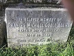 Monumental inscription: In beloved memory of / Francis Michael Goold-Adams / Captain Royal Artillery / aged 30 Years / who was killed by the bursting of a shell at Shoeburyness / whilst in the execution of his duty[8]
