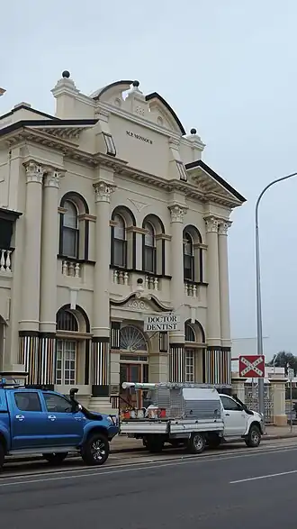 The former bank is a well composed building of architectural value and a prominent element of the streetscape.[1]