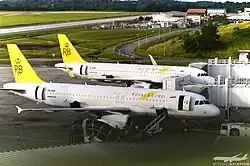 Two Royal Brunei Airlines Airbus A320 jets at Brunei International Airport