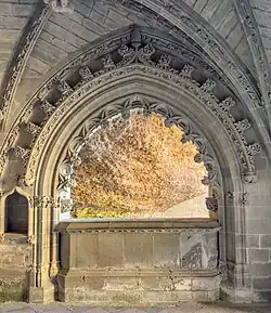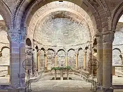 The cloister, built ca. 1190, contains a series of capitals with Biblical scenes that originally were arranged in chronological sequence, a design found elsewhere in the region.[1]