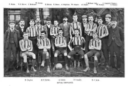 They opted to play in an all-blue kit, and at first played their home matches at the Invicta Ground in Plumstead, Royal Arsenal's old ground.[1] In their first season (1893–94), the club entered the FA Amateur Cup, beating New Brompton before being knocked out 3–2 by Reading. The rest of their first season consisted of friendlies. That changed in 1894–95 when they became founder members of the Southern League. They finished seventh of nine in their first season, and had to play a test match in order to retain their divisional status. They played Old St Stephen's, winning 3–1.[2]