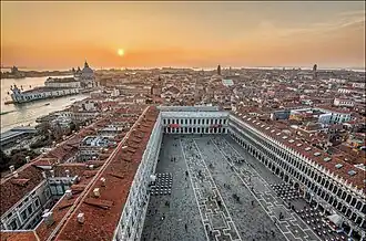 The Royal Palace of Venice (Italian: Palazzo Reale di Venezia) is a complex of buildings located in the central St. Mark's Square of Venice, Italy, which served as the residence for Napoleonic viceroys, the kings of Lombardy-Venetia, Austrian viceroys, and finally, the monarchs of unified Italy. The use and successive modifications of the Royal Palace began in 1807 and ended in 1919 when King Victor Emmanuel III ceded the building to the Italian State. Currently, the complex is divided between the National Library of Venice, the Archaeological Museum, and the Correr Museum.