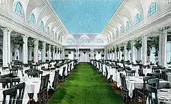 Although set to remain closed during the 1928-29 tourism season, repair work allowed the Royal Poinciana Hotel partially re-open on January 12, 1929, with 600 rooms usable.[24] The building underwent additional repairs and modifications during the off-season, including the razing of much of the north wing and replacing part of that section with two pergolas and a conservatory.[25][26] Workers also renovated existing rooms, with the Chicago Tribune noting "there are new baths, new furniture, a two-story colonnade; the great dining room opened for the first time since the 1928 hurricane, and the famous cocoanut grove restored to its former beauty."[27] Upon opening for the following season, the capacity for the Royal Poinciana Hotel stood at about 900 guests, down from 1,200 prior to the storm.[28] However, business at the hotel struggled in the aftermath of the Wall Street Crash of 1929 and the subsequent Great Depression.[12] After the end of the Royal Poinciana Hotel's season in March 1930, its closure appeared to bear little relevance to activity at other businesses and resorts in Palm Beach, a stark contrast to previous years.[29] In January 1932, the Royal Poinciana Hotel opened for what would be its final season.[30]