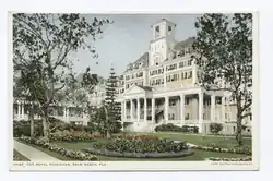 The six-story, Georgian-style hotel was built as a winter retreat for the elite by Henry Flagler, an oil, real estate, and railroad tycoon. Prior to his arrival in the early 1890s, Palm Beach was a desolate barrier island on Florida's Atlantic coast.[1] After staying at the home of Frederick and Marsena Nelson Robert near the Lake Worth Lagoon, Flagler described the area as a "veritable paradise" and envisioned a resort hotel for elite and wealthy guests. He soon purchased land on both shores of Lake Worth, triggering a small boom, which increased land prices by up to 60% and attracted more businesses to the area.[2] Next, Flagler announced his intentions to extend the Florida East Coast Railway (FEC) to the area, build a hotel on the eastern side of Lake Worth,[1] and develop a commercial and residential community on the other shore, which became West Palm Beach.[2] He then hired the firm McGuire and McDonald to construct the Royal Poinciana Hotel, while it is believed that the latter (Joseph McDonald of St. Augustine) designed the building.[3]: 209–210