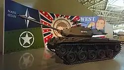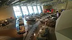 The collection includes tanks from both Eastern and Western countries, acquired through gifts or military exchange programs. The tanks are categorized by their origin, with those from Western NATO countries grouped together and those from Eastern Warsaw Pact countries classified separately. Notable examples in the collection include the Soviet Iosif Stalin III, BMP-1, PT-76, T-34, T-54, T-64, and T-72 tanks, as well as the American M22 Locust and M41 tanks, along with the M36 and M50 Ontos tank destroyers. Additionally, the British Chieftain, Conqueror, and Comet tanks are prominently featured.[50]
