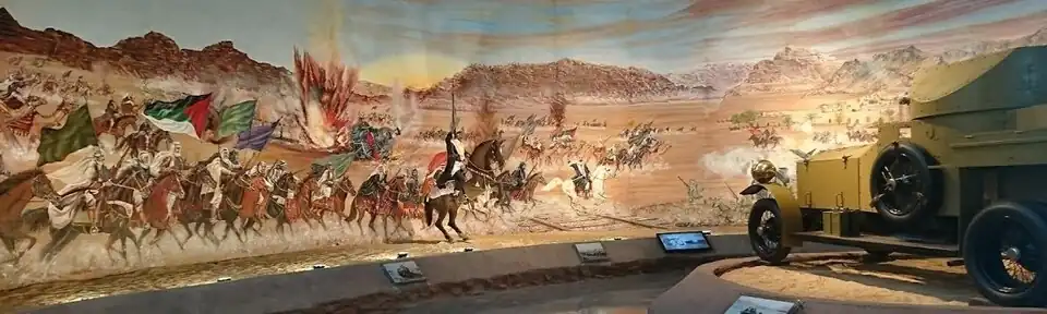 A 3D panorama depicting the events of the Great Arab Revolt at the South Jordan Theater, and a rare Rolls-Royce military car used by Prince Faisal during World War I.