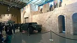 The exhibit features a three-dimensional representation of a section of Jerusalem's fortifications, highlighting the Jordanian Armed Forces' defensive efforts against Israeli forces during the 1948 Arab-Israeli War. Among the vehicles displayed is the South African Marmon-Harrington, the first armored vehicle used by the Royal Jordanian Land Forces, along with other armored vehicles like the Canadian Otter and the British Humber. The hall also includes a depiction of the 1948 Battle of Latrun, located west of Jerusalem. Both scenes showcase Jordanian soldiers in traditional Arab attire, reflecting their preference for not wearing helmets at the time.