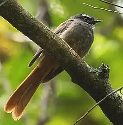 The rufous-tailed fantail (Rhipidura phoenicura) is a species of bird in the family Rhipiduridae. It is endemic to Java in Indonesia. Its natural habitat is subtropical or tropical moist montane forests.