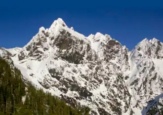 Rugged Mountain is the apex of the Haihte Range on Vancouver Island, British Columbia. From it, several glaciers, Nootka Sound, Woss Lake and the Tlupana Range are in view.