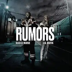 "Rumors" is a song by American rapper Gucci Mane featuring fellow American rapper Lil Durk. It was released through Atlantic and 1017 Records on January 25, 2022 as the lead single to his 2022 deluxe compilation album So Icy Gang: The ReUp. The artists wrote the song with producers Tay Keith and DJ Meech.[1] Gucci announced the song and its release date with a preview of it and its accompanying music video on January 24, 2022, the day before the song was released, referring to it as "a street smash".[2] The two artists have previously collaborated on Gucci's 2014 song, "Wit Us", which is a remix of Durk's 2014 song, "War Wit Us".[3]