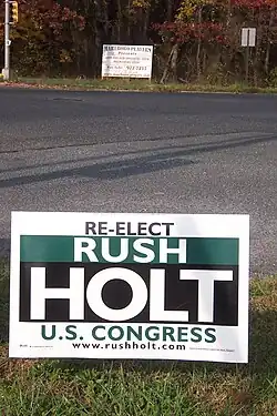 A Rush Holt yard sign along Route 520 in Marlboro Township, New Jersey during his successful 2008 re-election campaign.