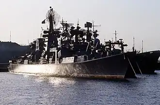 Petropavlovsk was the fifth ship of the Kara-class cruisers of the Soviet Navy. She was launched in November 1975 and commissioned in December 1976 at the 61 Communards Shipyard.[2] In 1996, she was scrapped in India.[1]